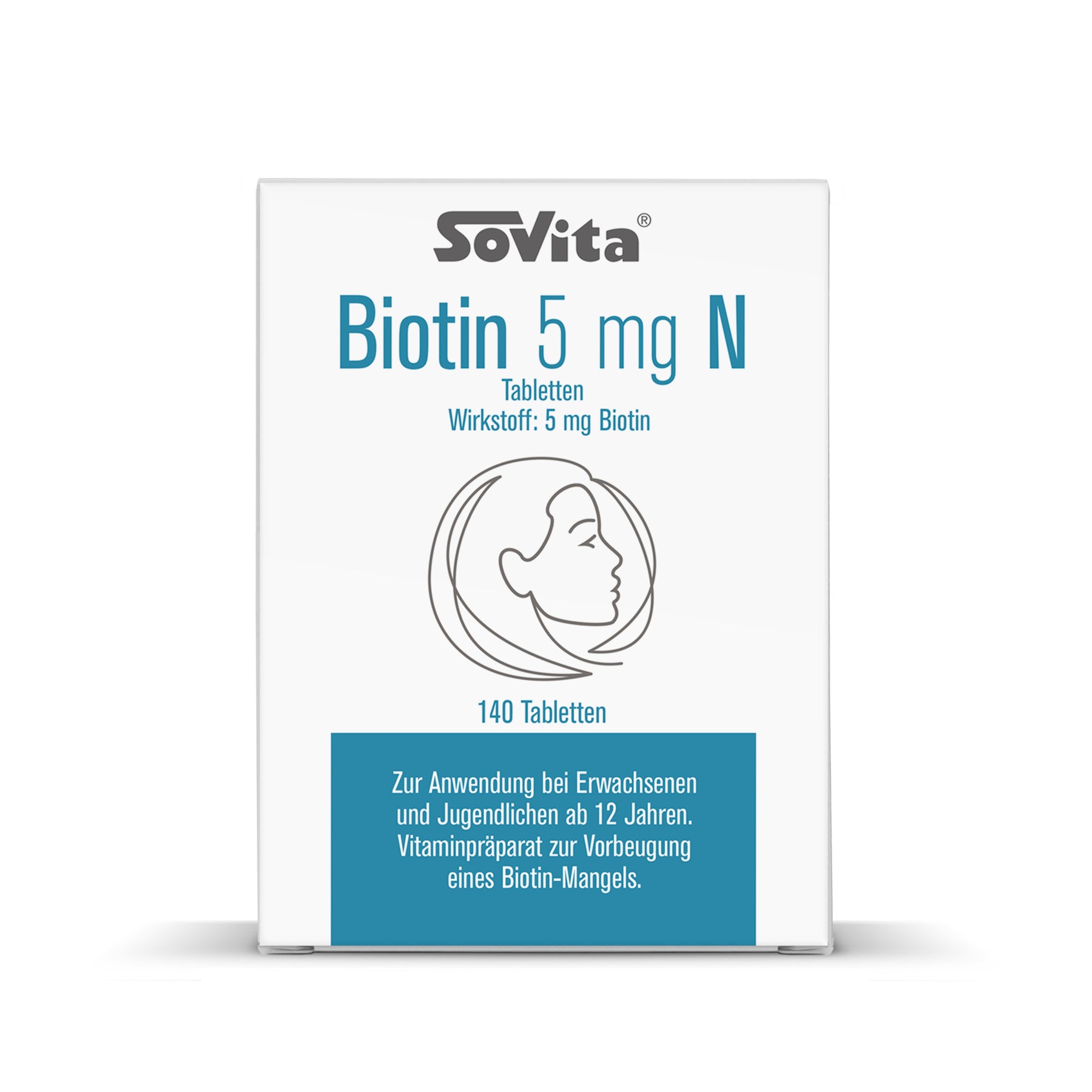 Biotin 5 mg N ist ein Vitaminpräparat. Es wird zur Vorbeugung eines Biotin-Mangels angewendet. (Zur Vorbeugung sind weniger als 0,2 mg Biotin am Tag ausreichend.).