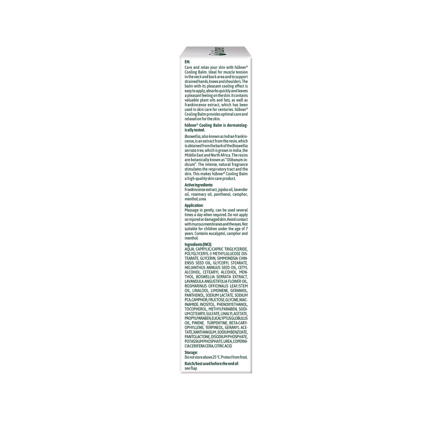 Kältebalsam mit kühlender Wirkung zur Entspannung der Haut und Muskeln, verpackt in einem Kosmetikum mit indischem Weihrauch.