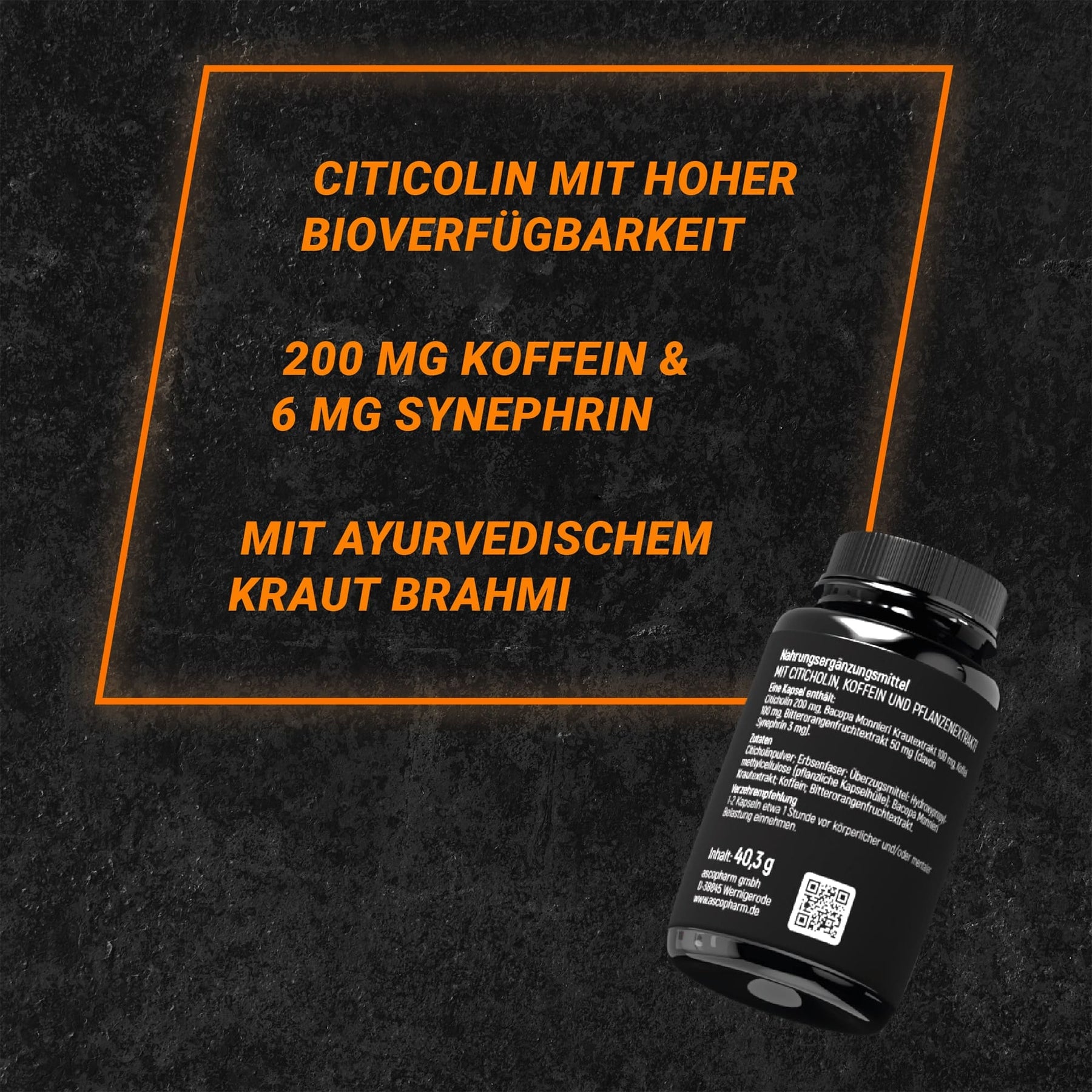 Citicolin Bacopa Monnieri Krautextrakt Koffein Bitterorangenextrakt davon Synephrin |