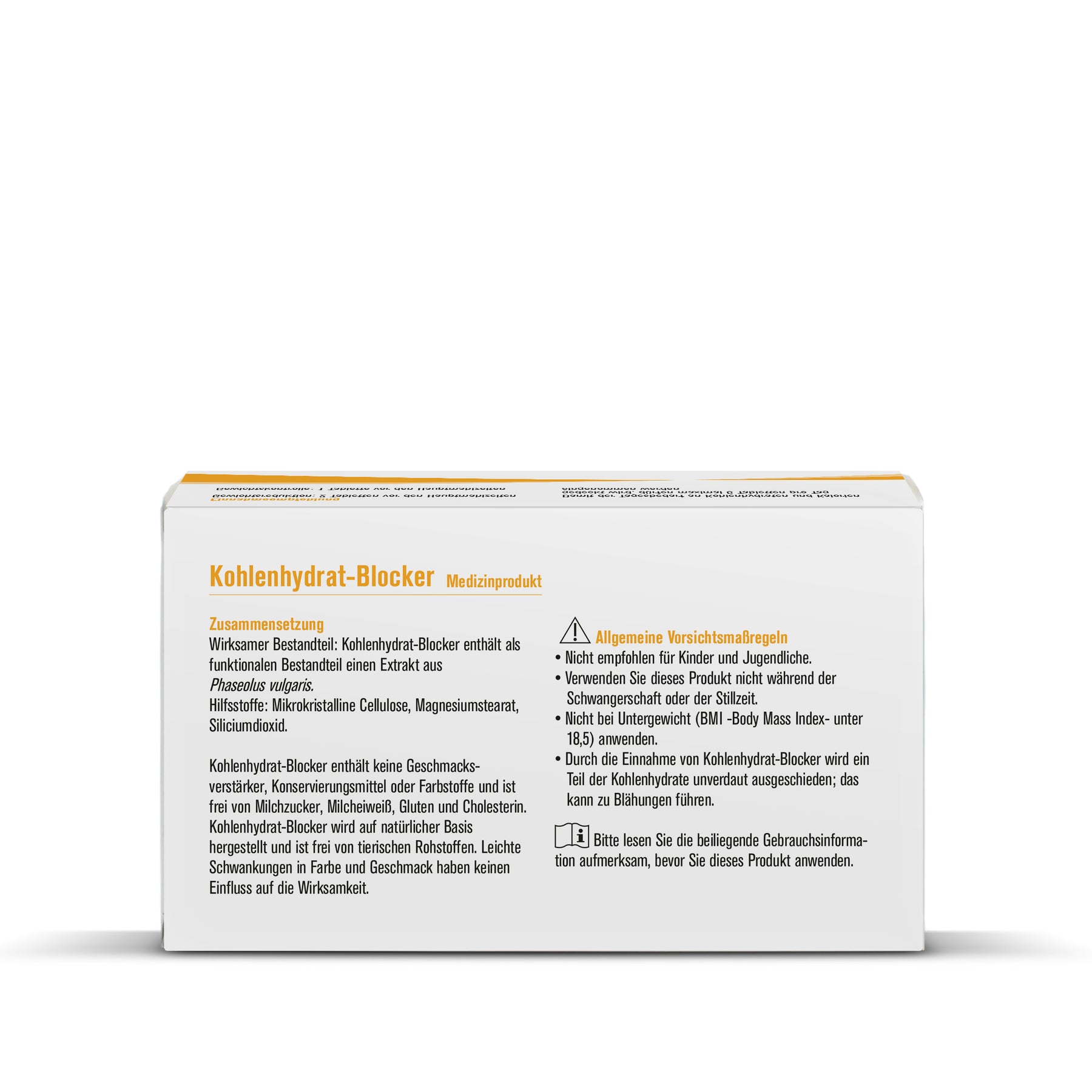 Hinweise und allgemeine Vorsichtsmaßnahmen Kohlenhydrat-Blocker reduziert die Verdauung von Kohlenhydraten aus der Nahrung, was in den ersten Tagen der Einnahme gelegentlich zu Blähungen, resp. Darmgasen führen kann. Nach wenigen Tagen gewöhnt sich der Stoffwechsel jedoch an die erhöhte Menge unverdauter Kohlenhydrate und kehrt zur Normalität zurück.