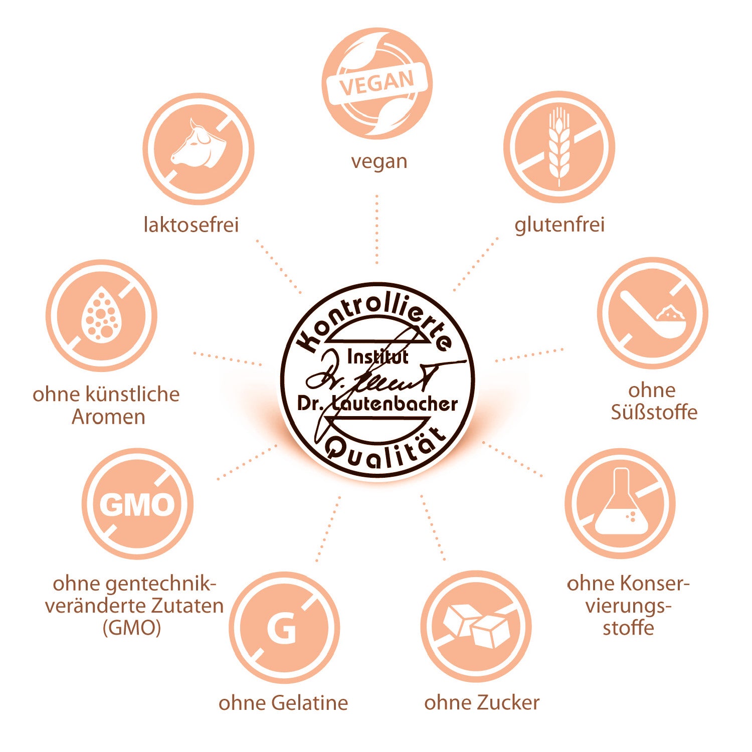 100 % vegan und frei von Gelatine oder sonstigen tierischen Bestandteilen