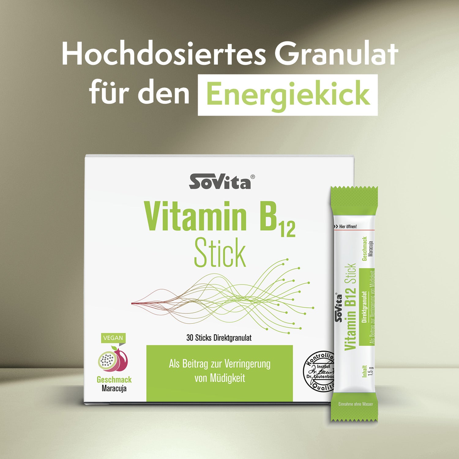 Füllstoff: Sorbit, Säuerungsmittel: Citronensäure, Aroma, Verdickungsmittel: Natrium-Carboxymethylcellulose, Trennmittel: Magnesiumsalze der Speisefettsäuren, Süßungsmittel: Sucralose, Vitamin B12 (Cyanocobalamin).