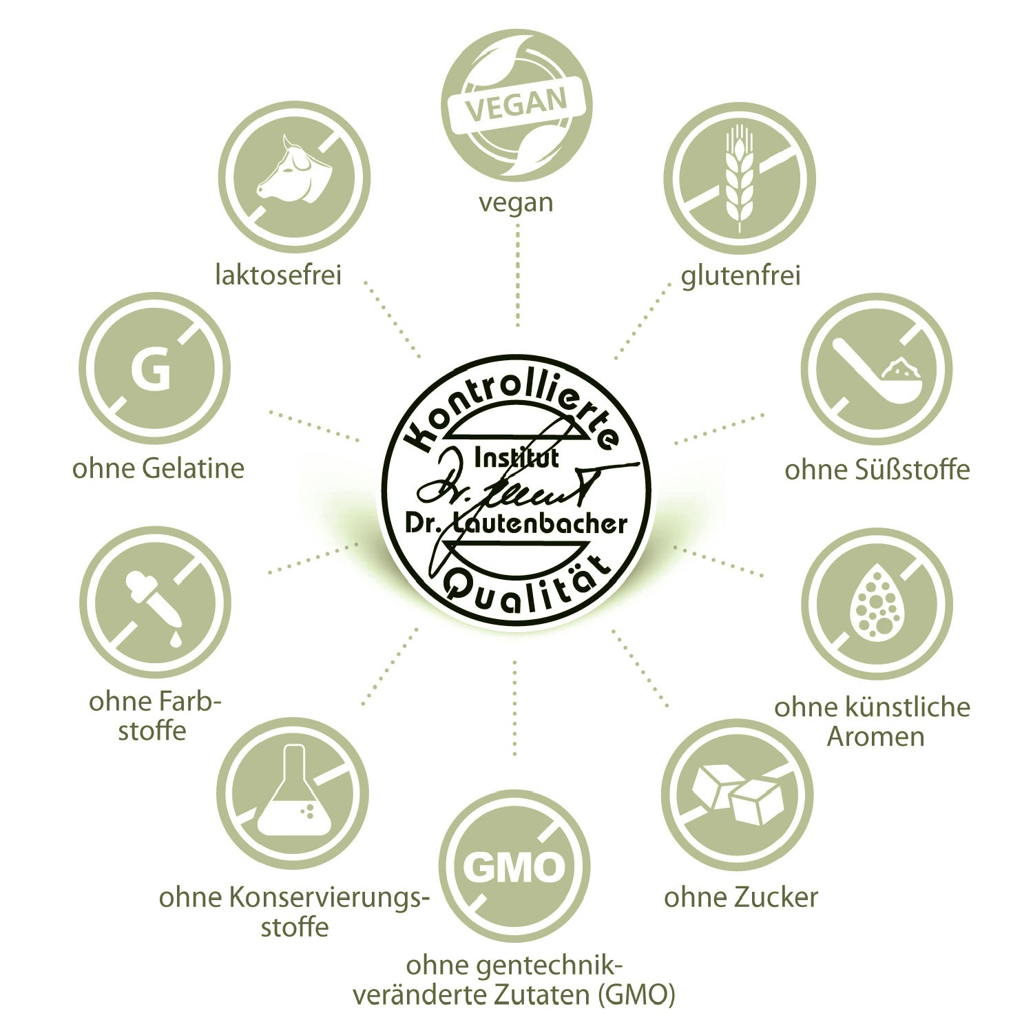 Apfelessigpulver 17 mg, Vitamin B6 2 mg, Folsäure 200 μg, Biotin 150 μg, Vitamin B12 1 μg.