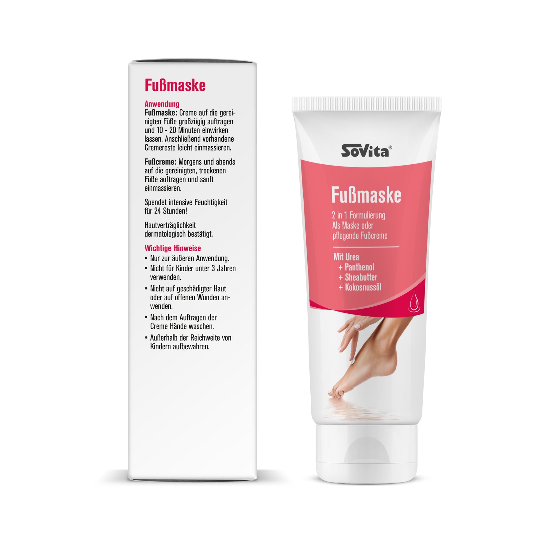 Die Fußmaske ist eine reichhaltige Sofortpflege für beanspruchte Füße mit Sheabutter & Kokosnussöl. Kombiniert mit Keratin und Panthenol für eine weiche Haut. Angewendet als Fußmaske werden insbesondere beanspruchte Füße intensiv gepflegt und mit Feuchtigkeit versorgt. Die Creme kann aber auch zur täglichen Fußpflege für ein weiches Hautgefühl verwendet werden. Unsere Füße tragen uns täglich durch unseren Alltag − egal ob an heißen Sommer- oder kalten Wintertagen, barfuß, in Socken oder Schuhen. Daher verdienen unsere Füße wohltuende und intensive Pflege.