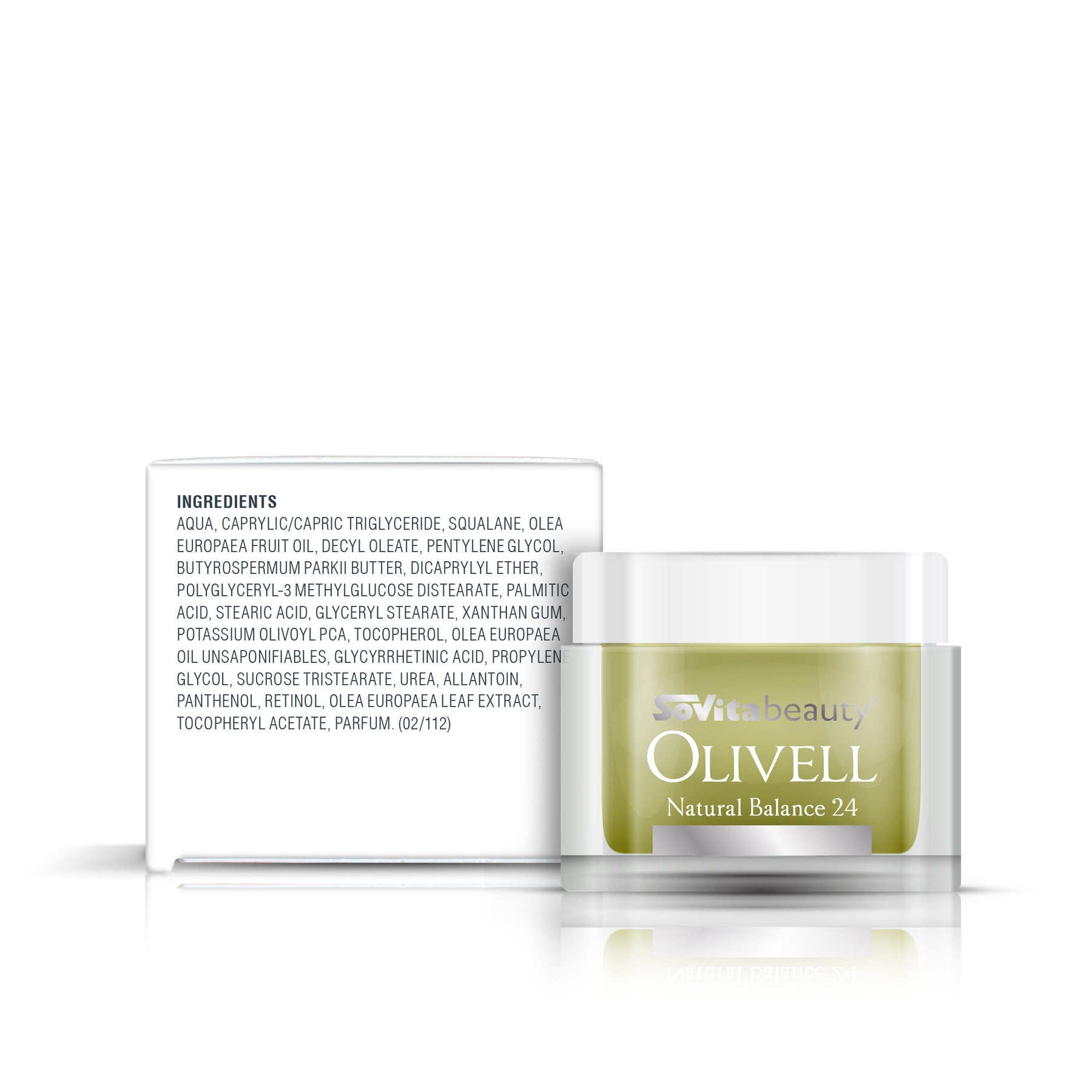 Die Olivell Creme bietet ein mediterranes Verwöhnprogramm mit reinem Olivenöl und konzentrierten Pflanzenextrakten des Olivenbaums. Die Creme spendet insbesondere der trockenen, empfindlichen Haut natürliche Lipide und Feuchtigkeit. Weitere Faktoren wie Urea und Panthenol beruhigen speziell sensible Haut. Ergänzt wird die Pflegeformel um die hautschützenden Vitamine A & E.