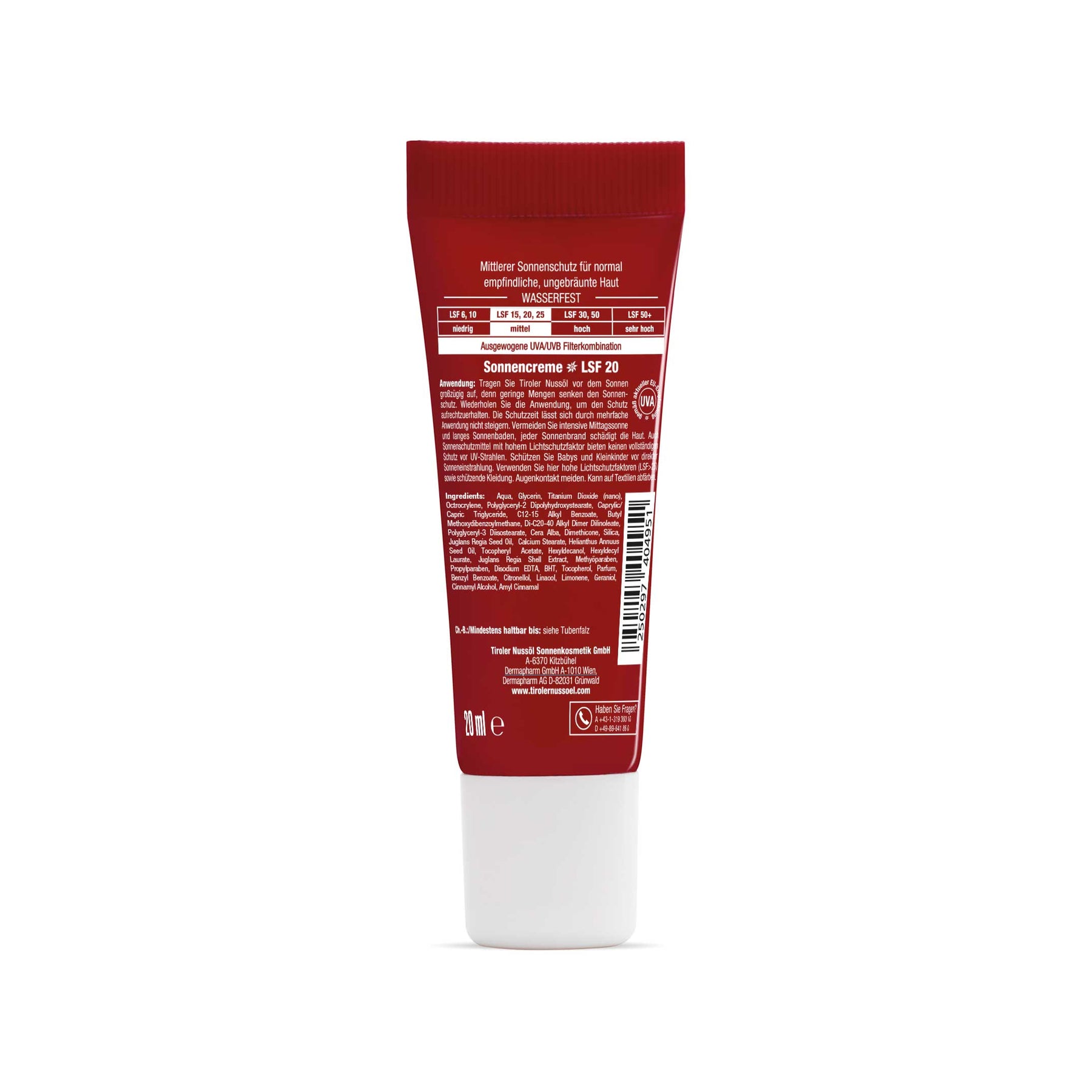 Aqua, Glycerin, Titanium Dioxide (nano), Octrocrylene, Polyglyceryl-2 Dipolyhydroxystearate, Caprylic/Capric Triglyceride, C12-15 Alkyl Benzoate, Butyl Methoxydibenzoylmethane, Di-C20-40 Alkyl Dimer Dilinoleate, Polyglyceryl-3 Diisostearate, Cera Alba, Dimethicone, Silica, Juglans Regia Seed Oil, Calcium Stearate, Helianthus Annuus Seed Oil, Tocopheryl Acetate, Hexyldecanol, Hexyldecyl Laurate, Juglans Regia Shell Extract, Methyöparaben, Propylparaben, Disodium EDTA, BHT, Tocopherol, Parfum, Benzyl Benzoate, Citronellol, Linaool, Limonene, Geraniol, Cinnamyl Alcohol, Amyl Cinnamal
