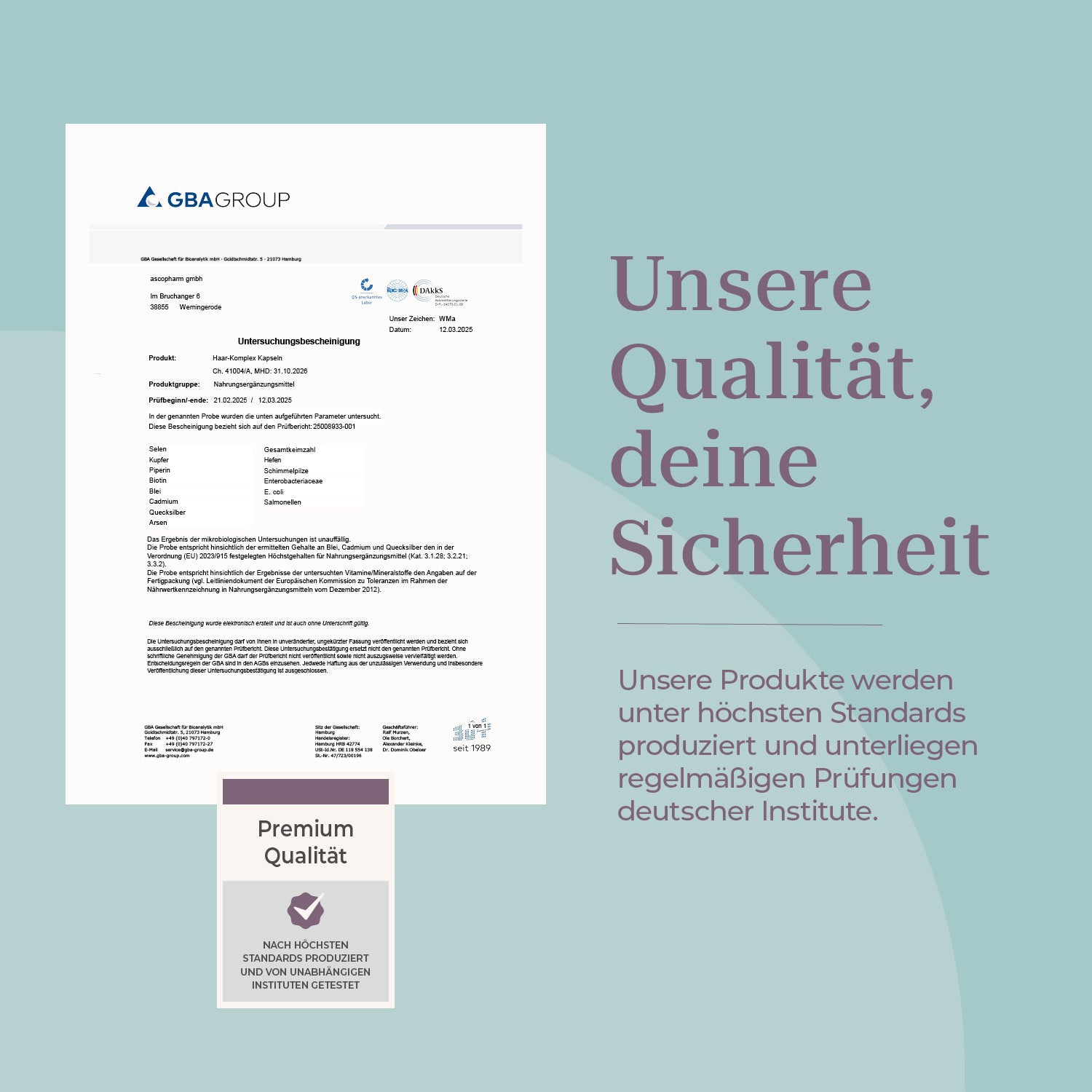 Hirseextrakt; Überzugsmittel: Hydroxypropylmethylcellulose (pflanzliche Kapselhülle); Kupfergluconat; Schwarzer Pfefferextrakt; L-Selenomethionin; D-Biotin.