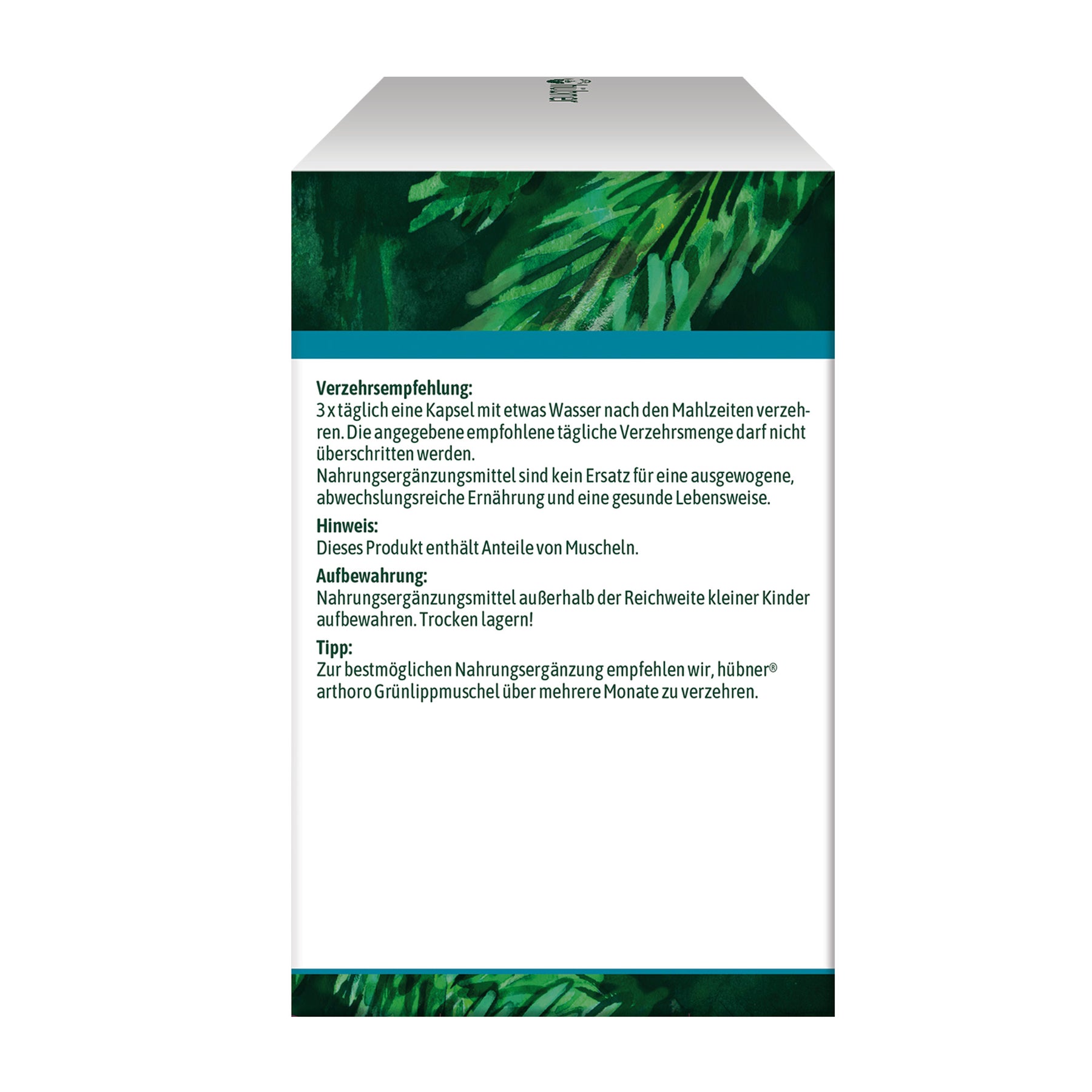 hübner® arthoro Grünlippmuschel bietet sich auch in Kombination zur Nahrungsergänzung an, um die körperliche Beweglichkeit und die Funktionen von Knochen und Knorpeln bestmöglich zu unterstützen. So kann das Produkt beispielsweise auch zusammen mit arthoro arthro, arthoro basis plus oder arthoro Hagebutte für eine ideale Nährstoffkombination und als wertvolle Ergänzung zu einer gesunden Ernährung verzehrt werden.