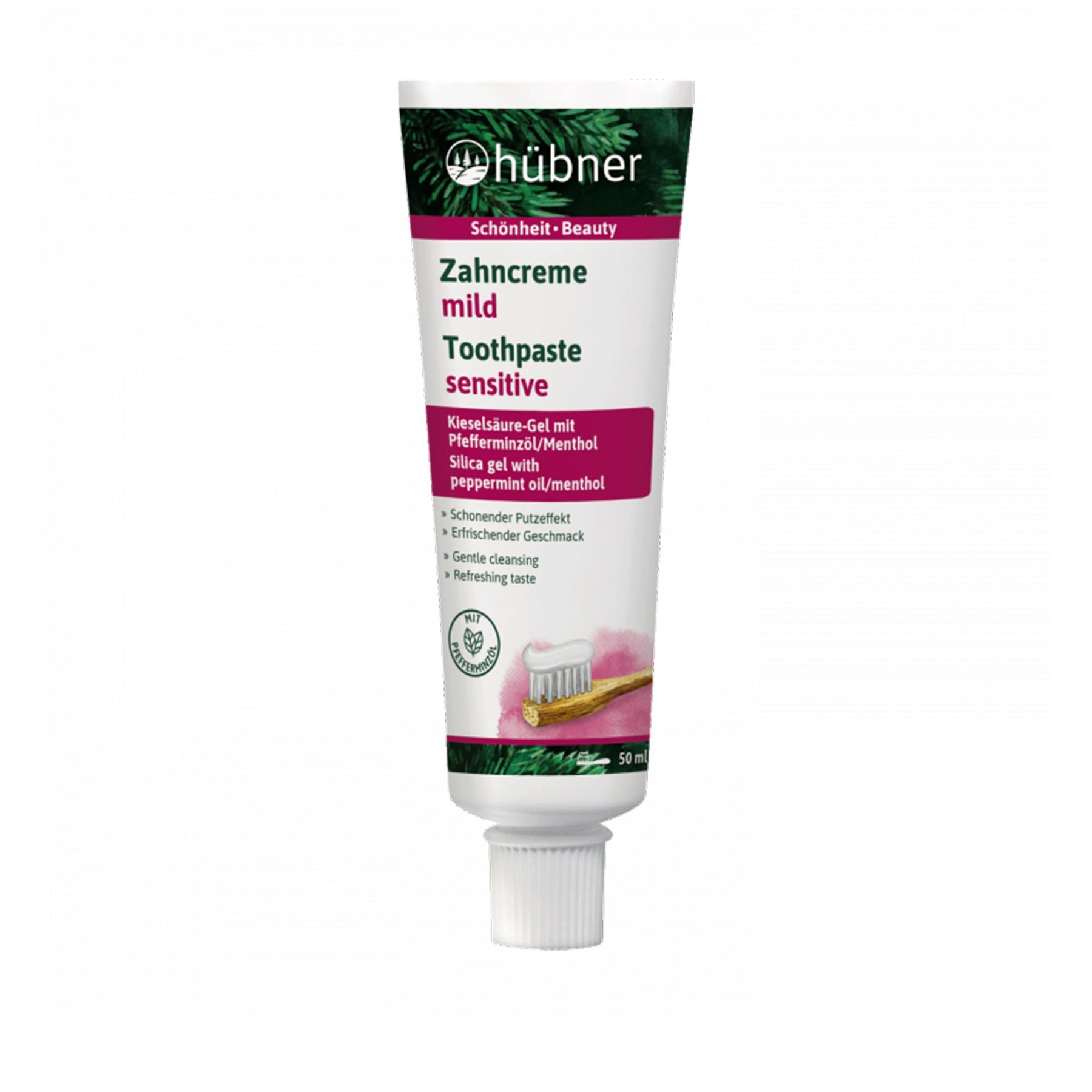 Die hübner® Zahncreme mild enthält keine Schaumbildner wie viele andere Zahnpflegemittel und kommt ohne Konservierungsstoffe aus. Das darin enthaltene Pfefferminzöl erfrischt den Atem mit seinen ätherischen Bestandteilen. Darüber hinaus sorgen Menthol und weitere natürliche Parfümbestandteile für Frische.