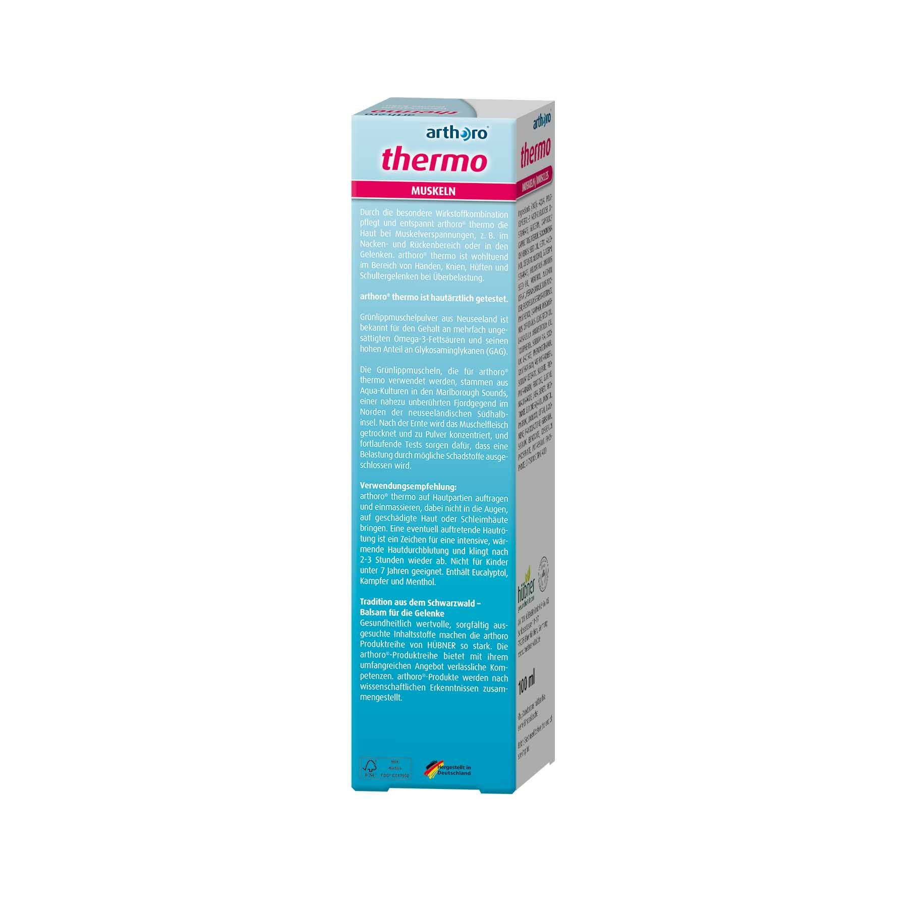 Ein Wärmebalsam mit Ölen und ätherischen Stoffen aus Menthol und Weihrauch sollte außerdem ein angenehmes Gefühl auf der Haut hinterlassen. Auch beim Arthoro® Thermo Wärmebalsam kommt das Muschel-Konzentrat wie bei den Arthoro® Nahrungsergänzungsmitteln zum Einsatz. Es wird in einem schonenden Verfahren aus neuseeländischen Grünlipp-Muscheln gewonnen.