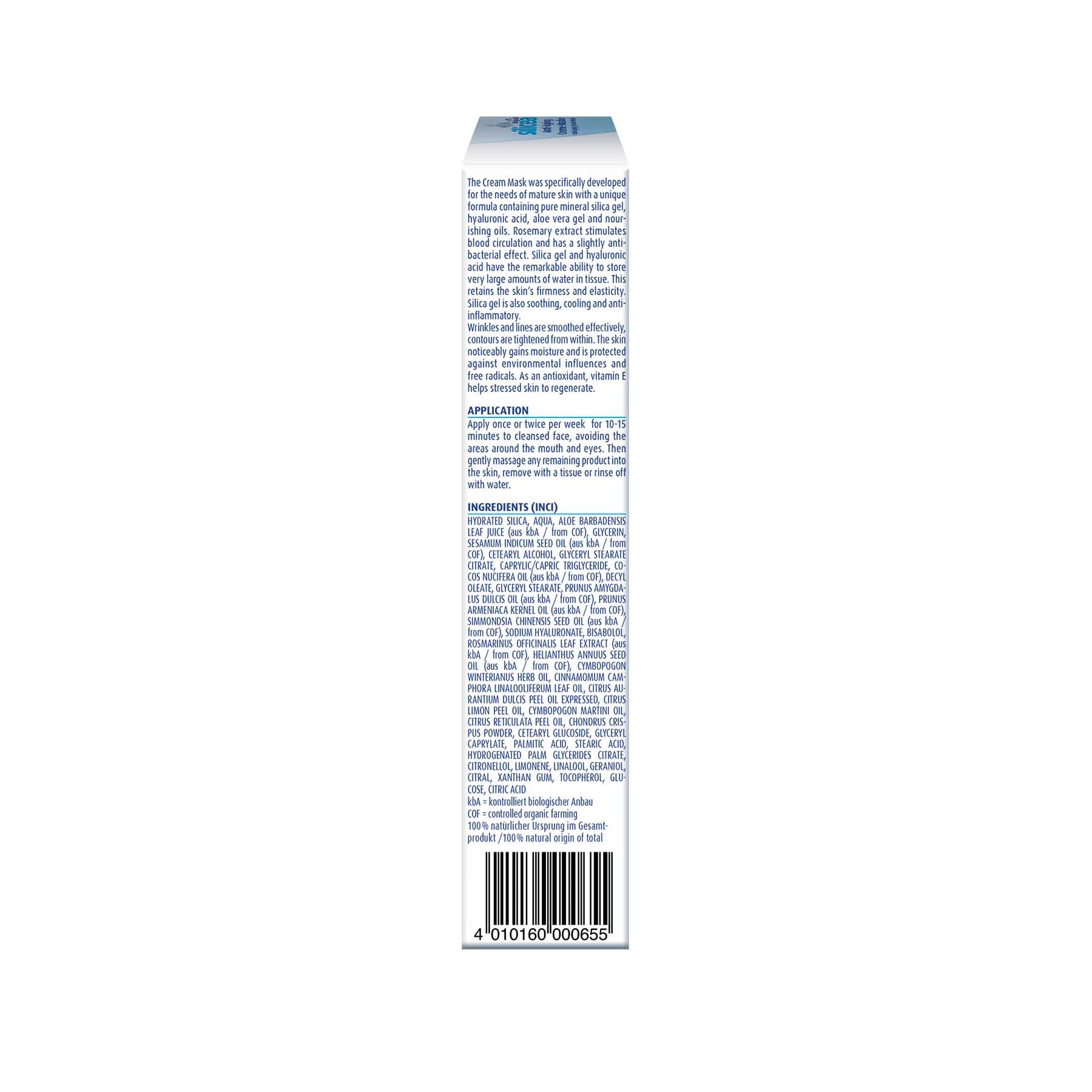 Die einzigartige Formel der Hübner Original silicea® Anti-Aging Creme-Maske mit rein mineralischem Silicium-Gel, Hyaluronsäure, Aloe Vera-Gel und pflegenden Ölen von Sesam, Mandel, Aprikosenkernen und Jojoba wurde speziell für die Bedürfnisse reifer Haut entwickelt. Zudem regt Rosmarinextrakt die Blutzirkulation an und wirkt leicht antibakteriell.