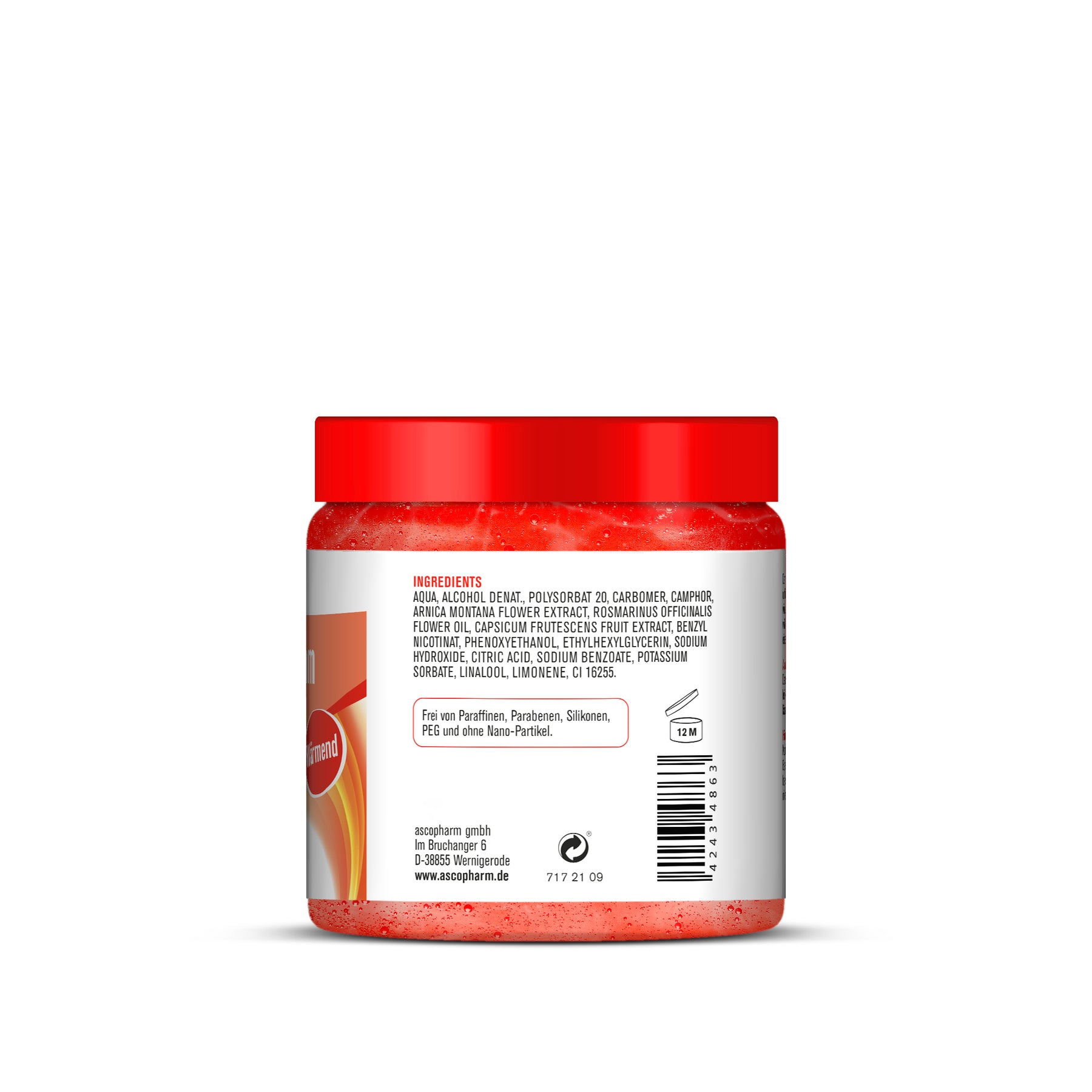 Er enthält viele Kräuter aus der Natur, wie Arnika, Kampfer und Rosmarin. Dazu wirkt ein Extrakt aus Chilischoten durchblutungsfördernd und sorgt für eine angenehme Wärme bei Muskelkater und Verspannungen.