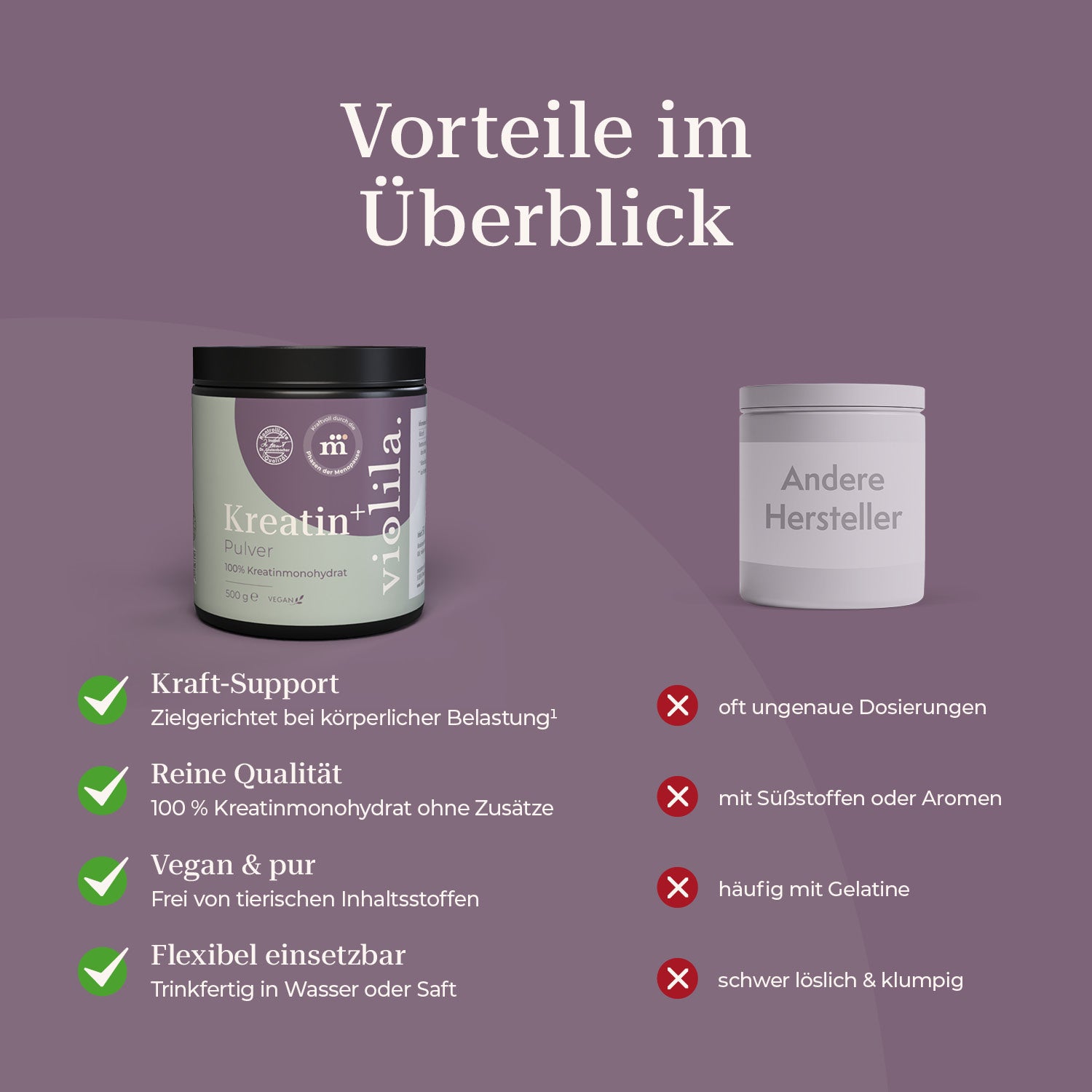 Weitere Informationen:Kraftvoll durchstarten – mit violila Kreatin⁺