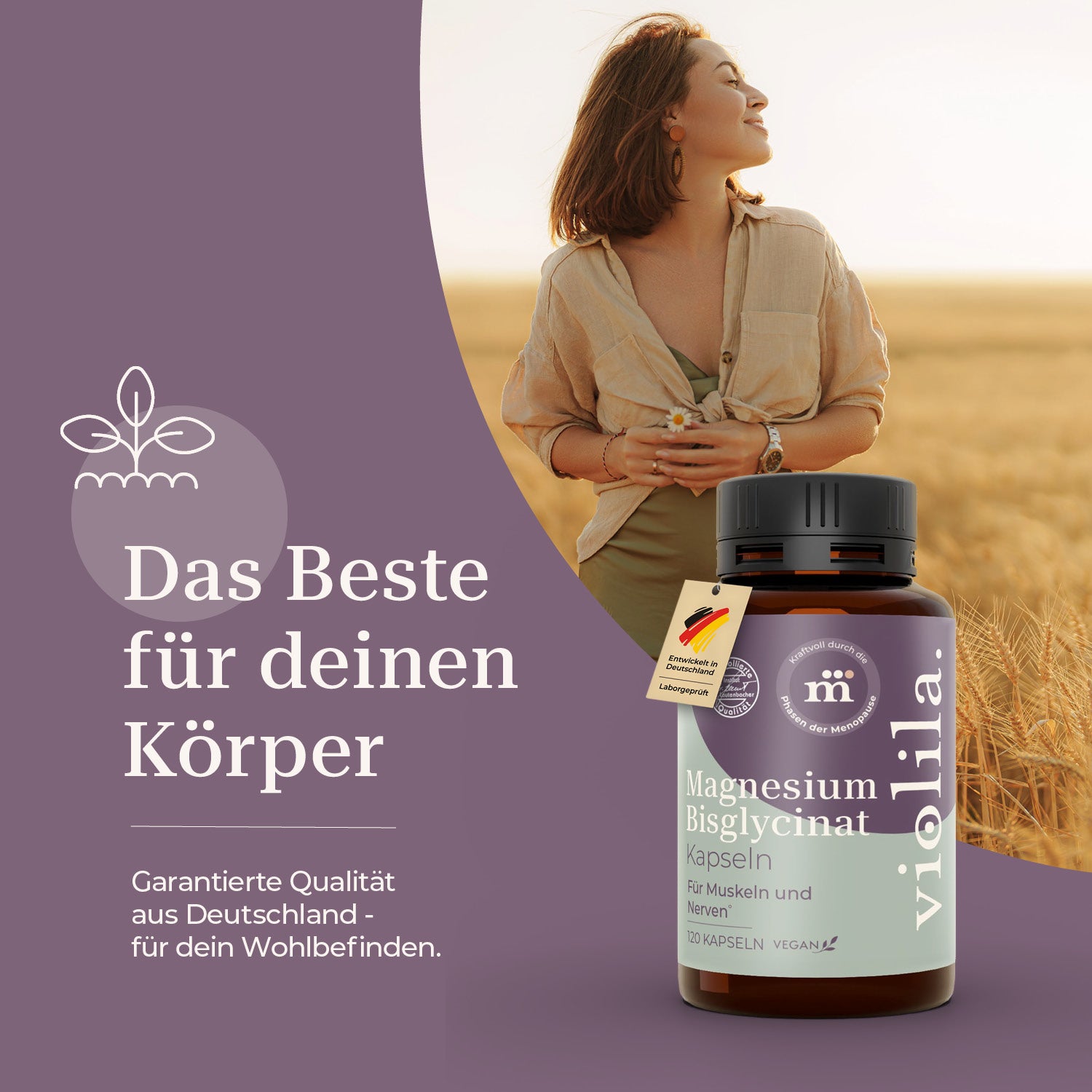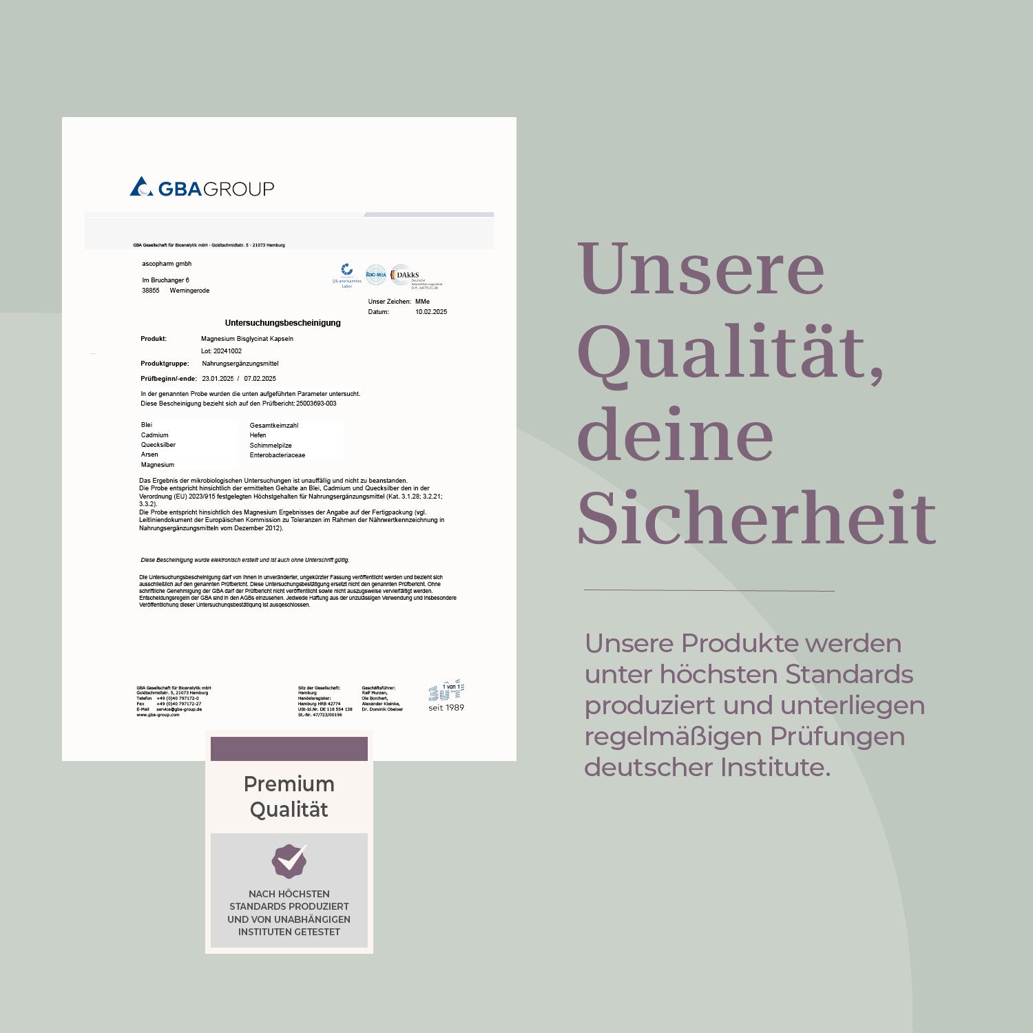 Die verwendete Form Magnesiumbisglycinat wird vom Körper gut aufgenommen und eignet sich daher besonders zur langfristigen Versorgung mit Magnesium.