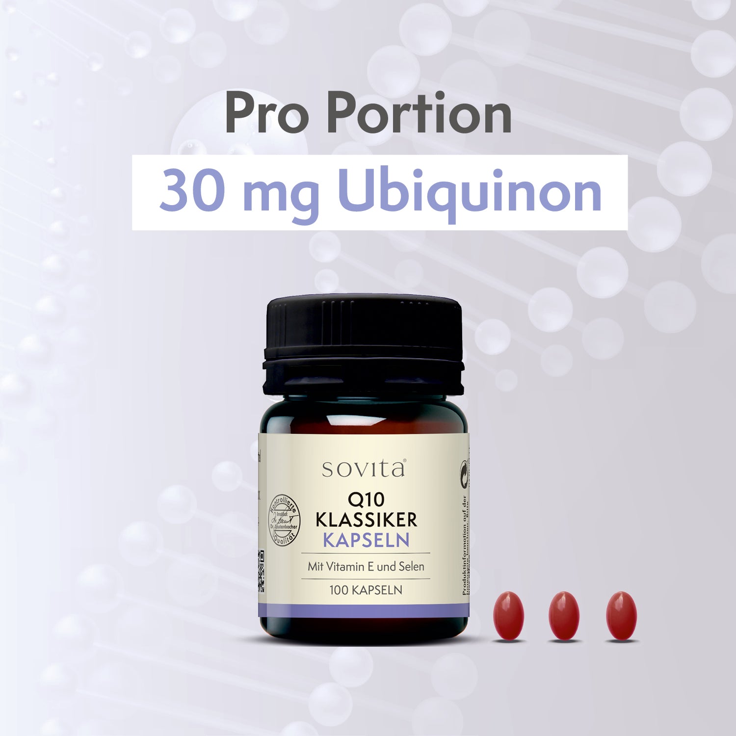 Unsere sovita Q10 Klassiker Kapseln sind eine optimale Nahrungsergänzung, um Ihren Körper mit Coenzym Q10 zu versorgen. Coenzym Q10 ist ein wichtiger Bestandteil für die Energieproduktion in unseren Zellen und spielt eine entscheidende Rolle für eine gesunde Funktionsweise von Herz, Muskeln und Organen. Mit unseren hochwertigen Q10-Kapseln können Sie von den zahlreichen Vorteilen dieses essentiellen Nährstoffes profitieren.