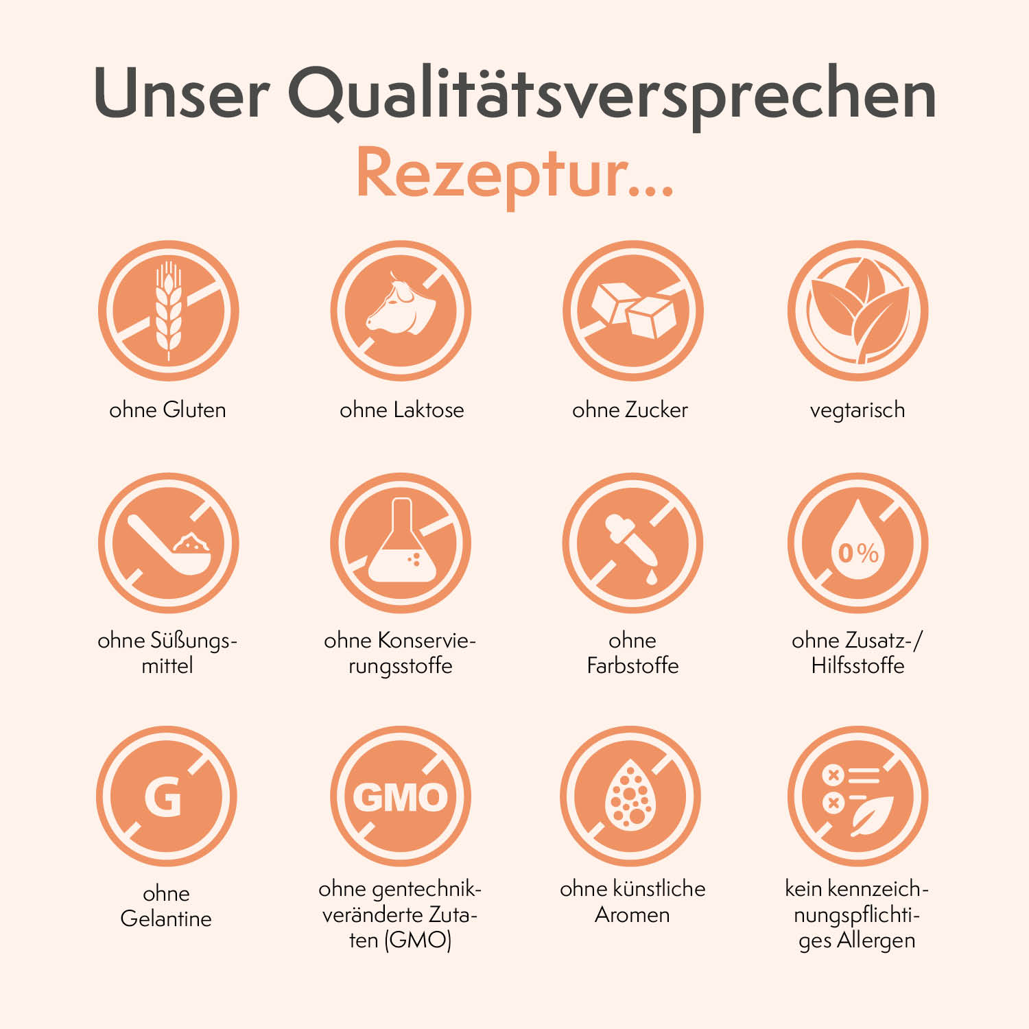 - Nahrungsergänzungsmittel sind kein Ersatz für eine ausgewogene und abwechslungsreiche Ernährung.
