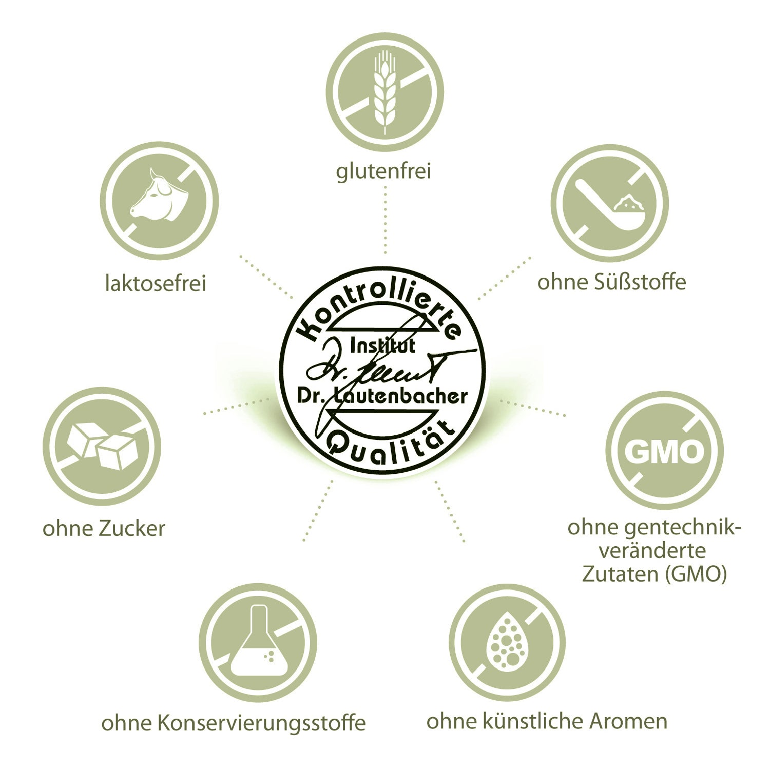 Pflanzliche Öle (Soja, Kokos, Sonnenblume); Gelatine; Tomatenextrakt (17,3 %); Grünteeextrakt (13 %); Vitamin C (L-Ascorbinsäure); Feuchthaltemittel: Glycerin; Traubenkernextrakt (7,8 %); Vitamin E (D-alpha-Tocopherol); Füllstoff: Bienenwachs, weiß und gelb; Emulgator: Lecithine (Soja); Beta-Carotin (0,4 %); Natriumselenat; Farbstoffe: kupferhaltige Komplexe der Chlorophylle, Eisenoxide und Eisenhydroxide.