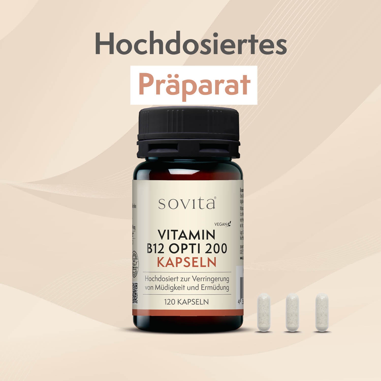 Hohe Dosierung: Jede Kapsel enthält 200 µg Vitamin B12, was eine effektive Ergänzung zur täglichen Ernährung darstellt.