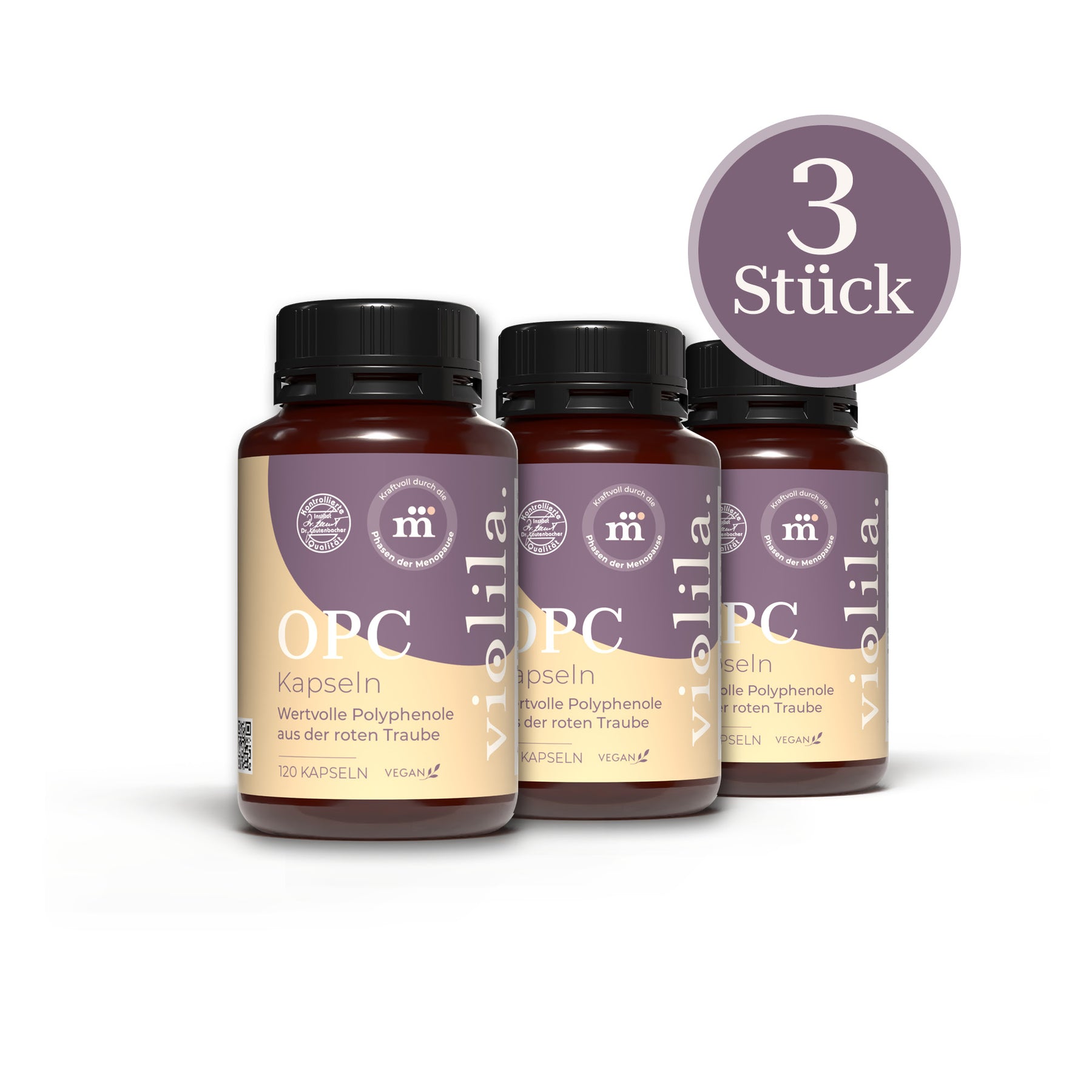 violila OPC Kapseln enthalten hochkonzentrierten Traubenkernextrakt mit einem besonders hohen Anteil an OPC (oligomeren Proanthocyanidinen). Jede Kapsel liefert 583 mg reinen Extrakt – davon 554 mg Polyphenole und 350 mg OPC. Die sekundären Pflanzenstoffe stammen ausschließlich aus roten Traubenkernen und ergänzen eine pflanzlich orientierte Ernährung. Vegan, standardisiert und unter kontrollierten Bedingungen hergestellt.