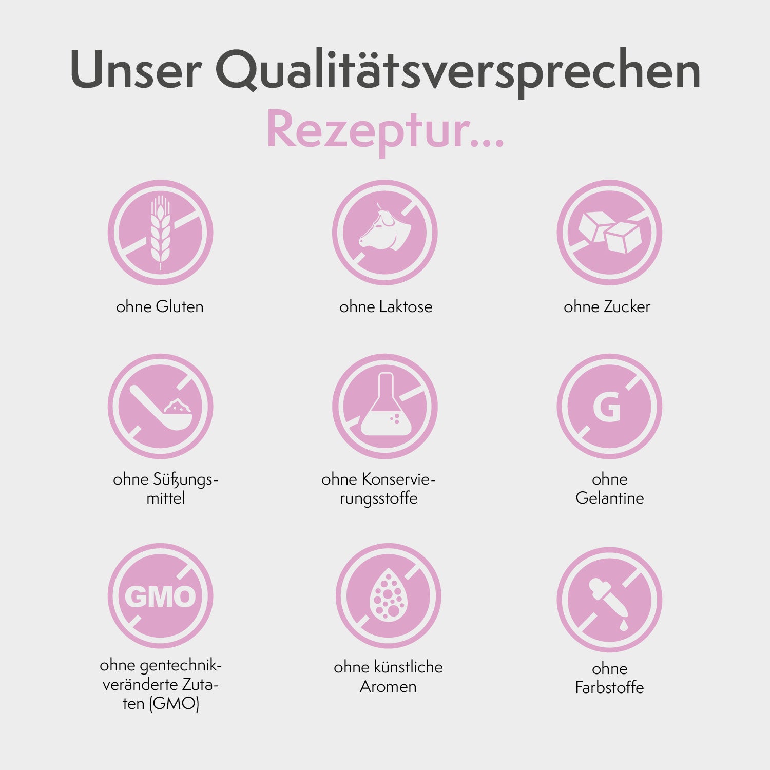 Nahrungsergänzungsmittel sollten nicht als Ersatz für eine ausgewogene und abwechslungsreich Ernährung dienen. Achten Sie auf eine gesunde Lebensweise.