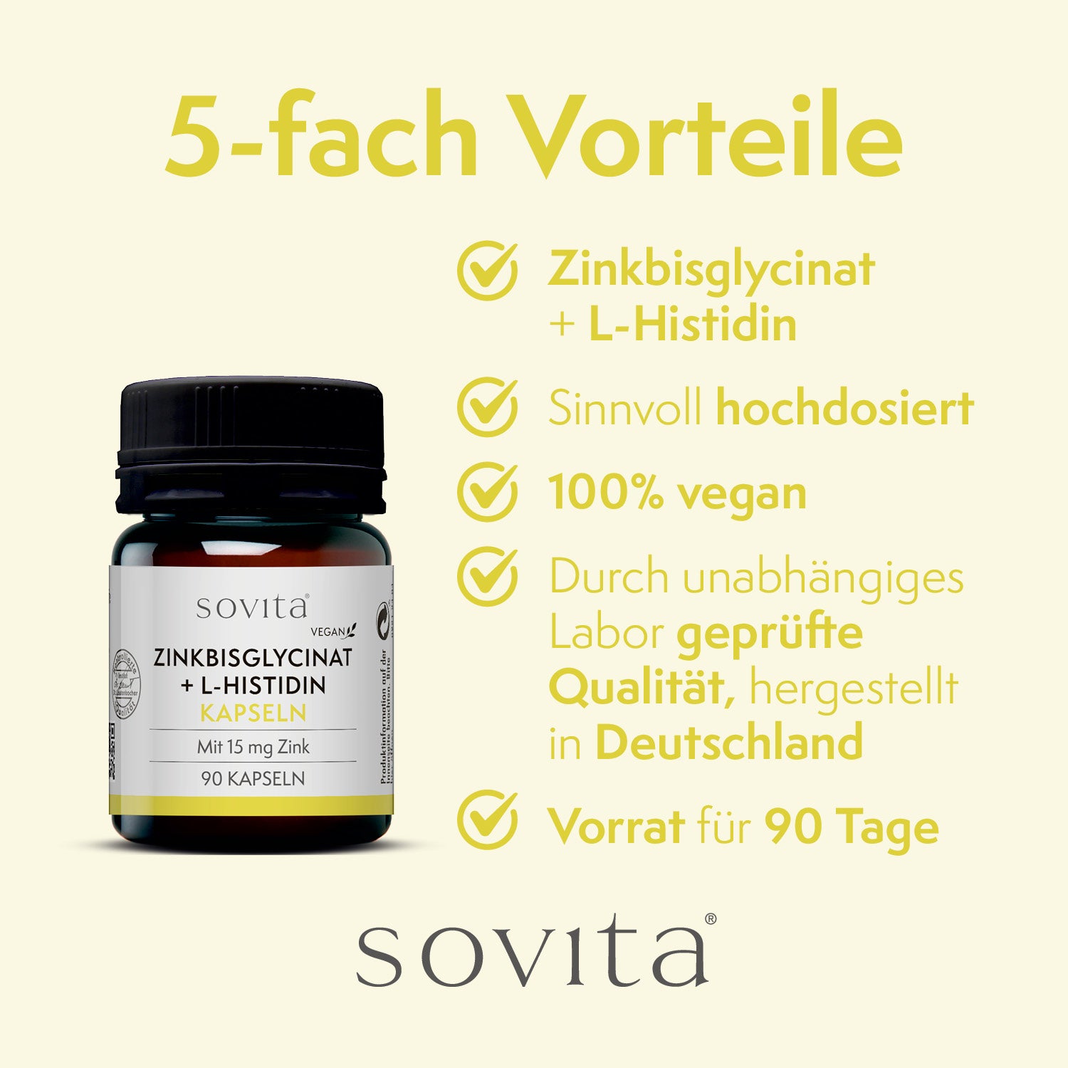 Die sovita Zinkbisglycinat + L-Histidin Kapseln bieten Ihnen folgende Vorteile: